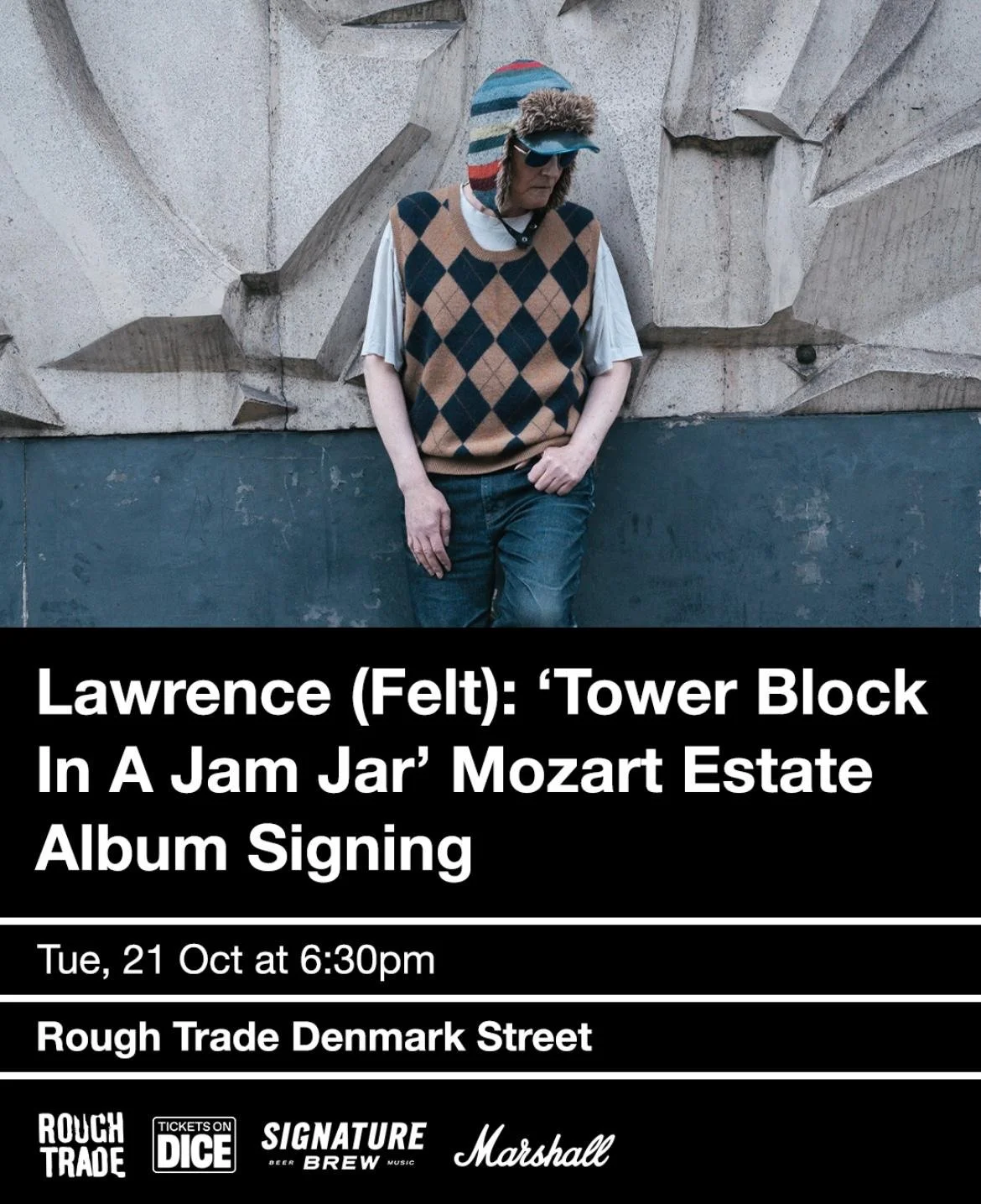 Since the success of the book Street Level Superstar – Lawrence has gained a whole new audience. New fans, not necessarily Felt or Mozart fans of old. That’s why Tower Block In A Jam Jar exists.